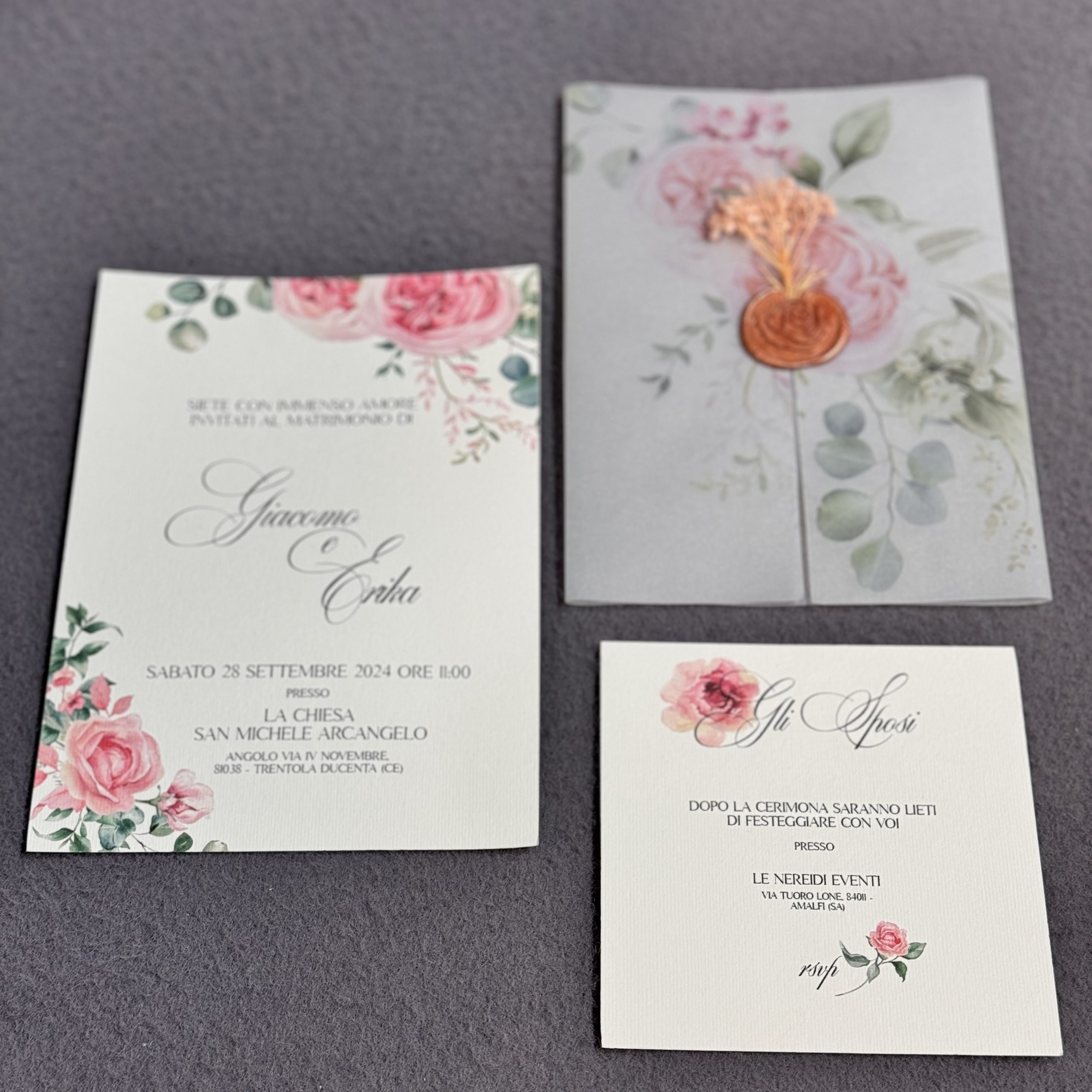 Dreamy Pink Rose è completamente personalizzabile nei testi e nei dettagli grafici, mantenendo uno stile raffinato e coerente. Una partecipazione perfetta per chi sogna un matrimonio romantico, delicato e senza tempo, firmato Effegi Lab.